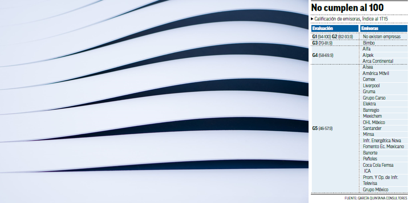 Aunque las emisoras deben revelar su análisis de sensibilidad -clave para simular escenarios de pérdidas inesperadas ante situaciones adversas- el 53 por ciento de las que integran el IPC no lo revelan y 47 por ciento lo hicieron de forma incompleta, según el índice de Cumplimiento (INDICE G) elaborado por el despacho García Quintana Consultores.
